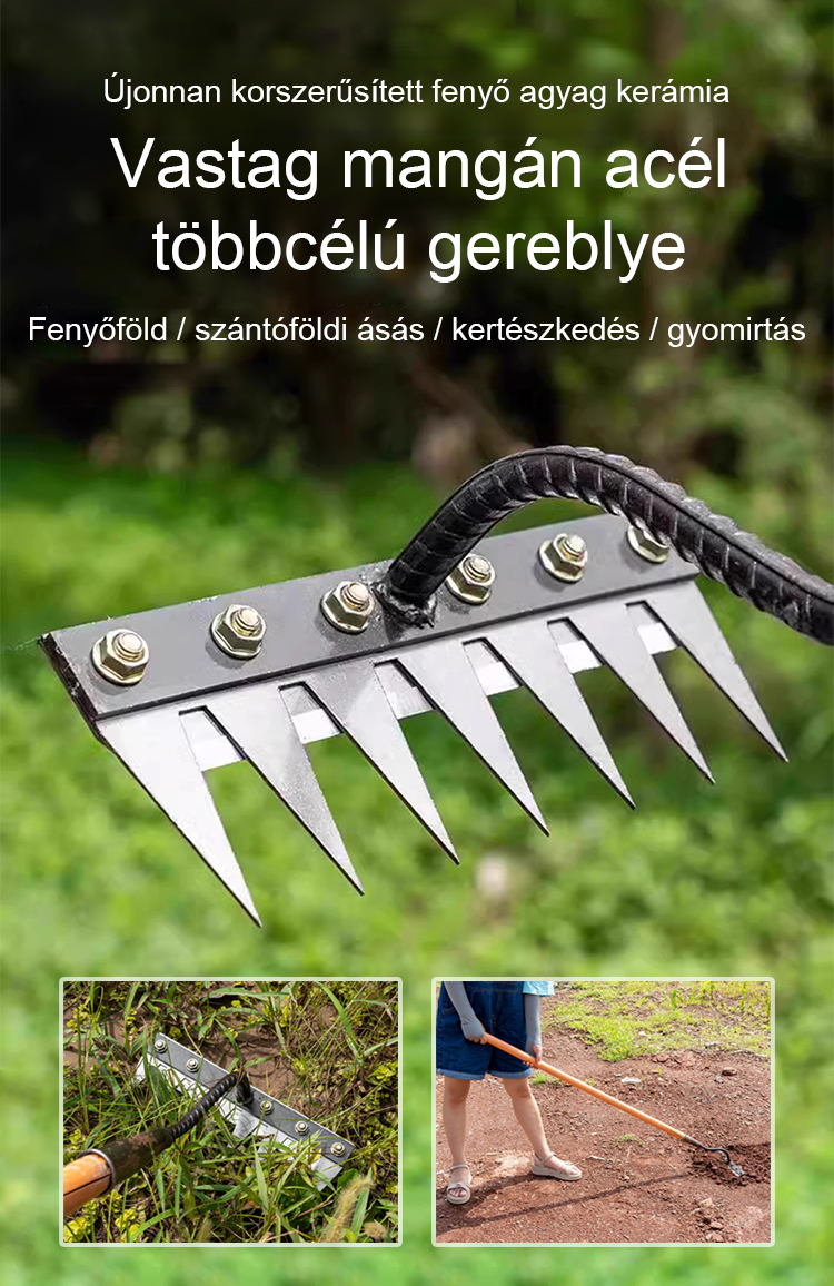 Levehető mezőgazdasági gyomirtó mangánacél gerebés