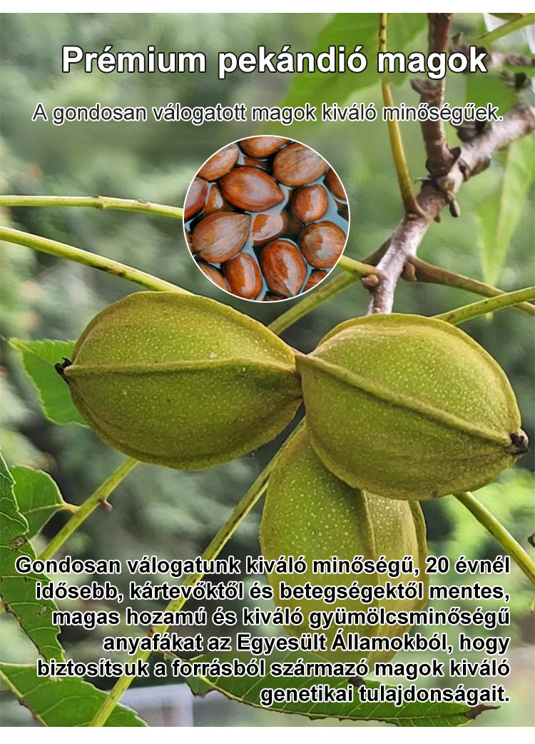 Importált pekándió magok az USA-ból, professzionálisan termesztve, garantáltan magas túlélési arány.