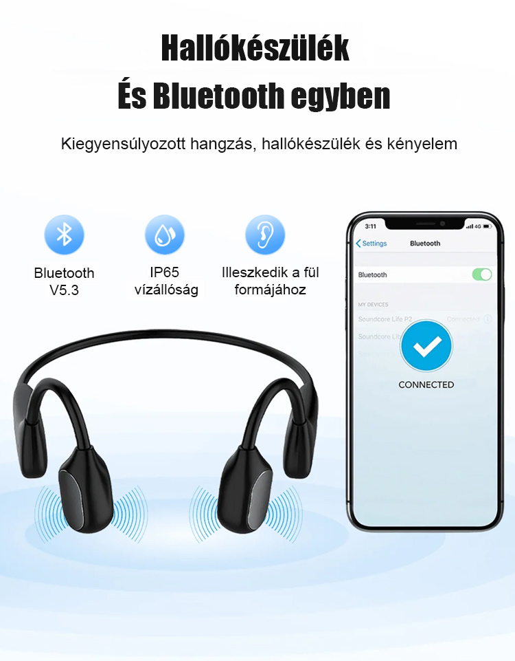 Csontvezetéses Bluetooth fejhallgató hallókészülék